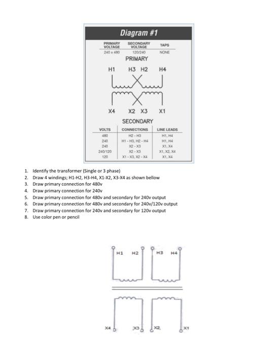 Solved Diagram 1 Primary Voltage 2400 Secondary Voltage Chegg Com